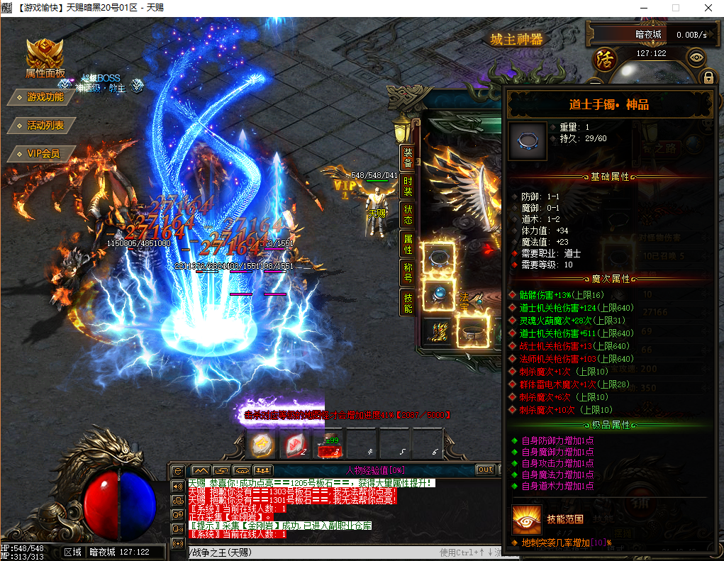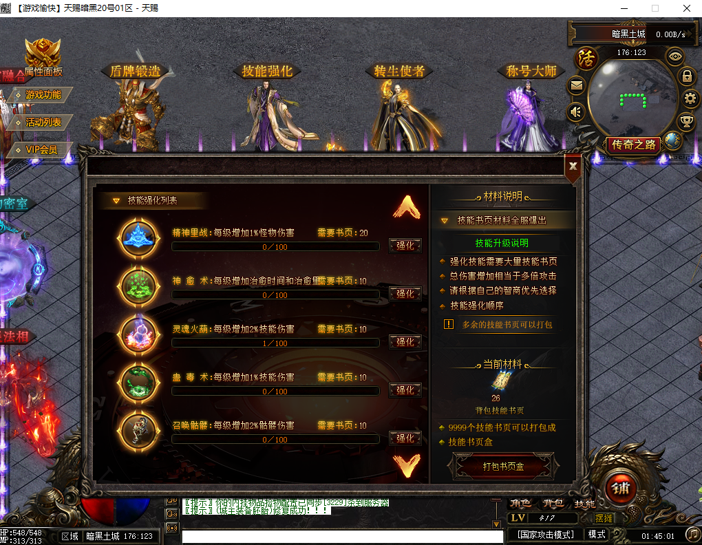 【战士】:烈火还可以再次触发神龙攻击。一般主升刺杀,野蛮冲撞前期伤害最高,打BOSS必备。